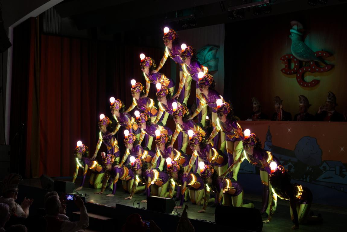 Eröffnet mit einem Prolog des 1. Vorsitzenden, Joachim Kleintitschen und dem Einmarsch der reich vertretenen Mainzer Garden unter der Führung der Ranzengarde stieg eine Sitzung, in der sich die Höhepunkte förmlich aneinander reihten. Nach dem Protokoll unseres Mitglieds Peter Darmstadt zeigte das Hofballet des DCC eine schwungvolle Choreografie und riss das Publikum damit von den Stühlen.