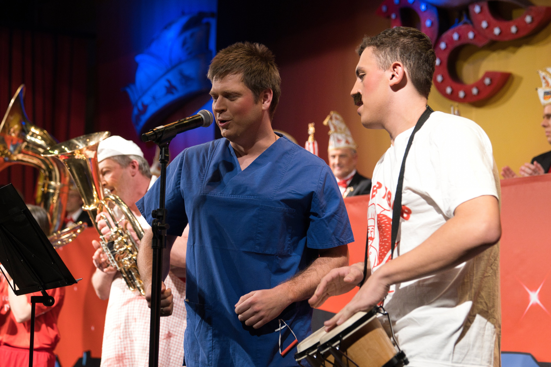 Musikalisch heizte Oliver Mager dem Publikum genauso ein wie die Spaßmacher Company und Handkäs un soi Mussig. Die Sitzungskapelle O-Ton aus Weisenau lieferte punktgenau den Tusch und unterstützte mit einem toll abgestimmten Klang.