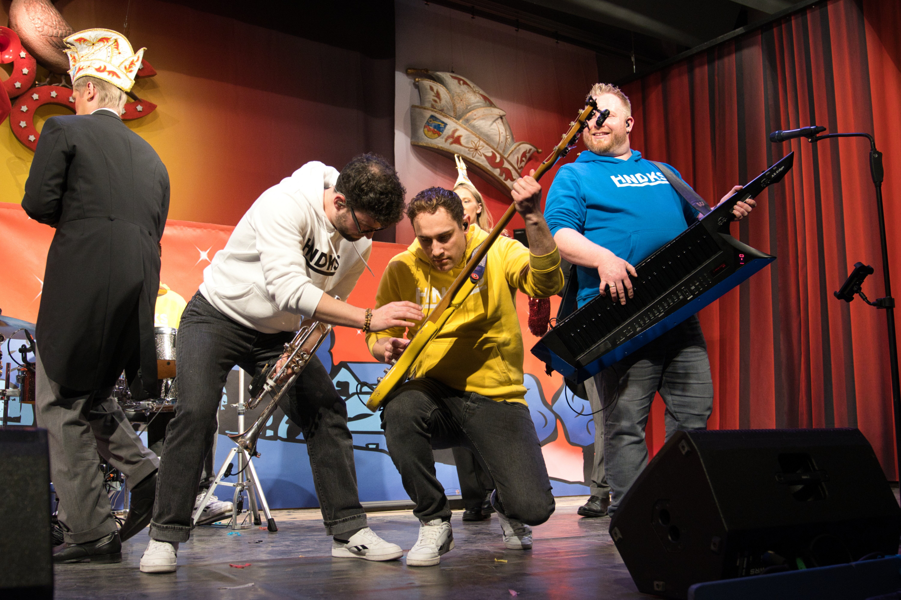 Musikalisch heizte Oliver Mager dem Publikum genauso ein wie die Spaßmacher Company und Handkäs un soi Mussig. Die Sitzungskapelle O-Ton aus Weisenau lieferte punktgenau den Tusch und unterstützte mit einem toll abgestimmten Klang.