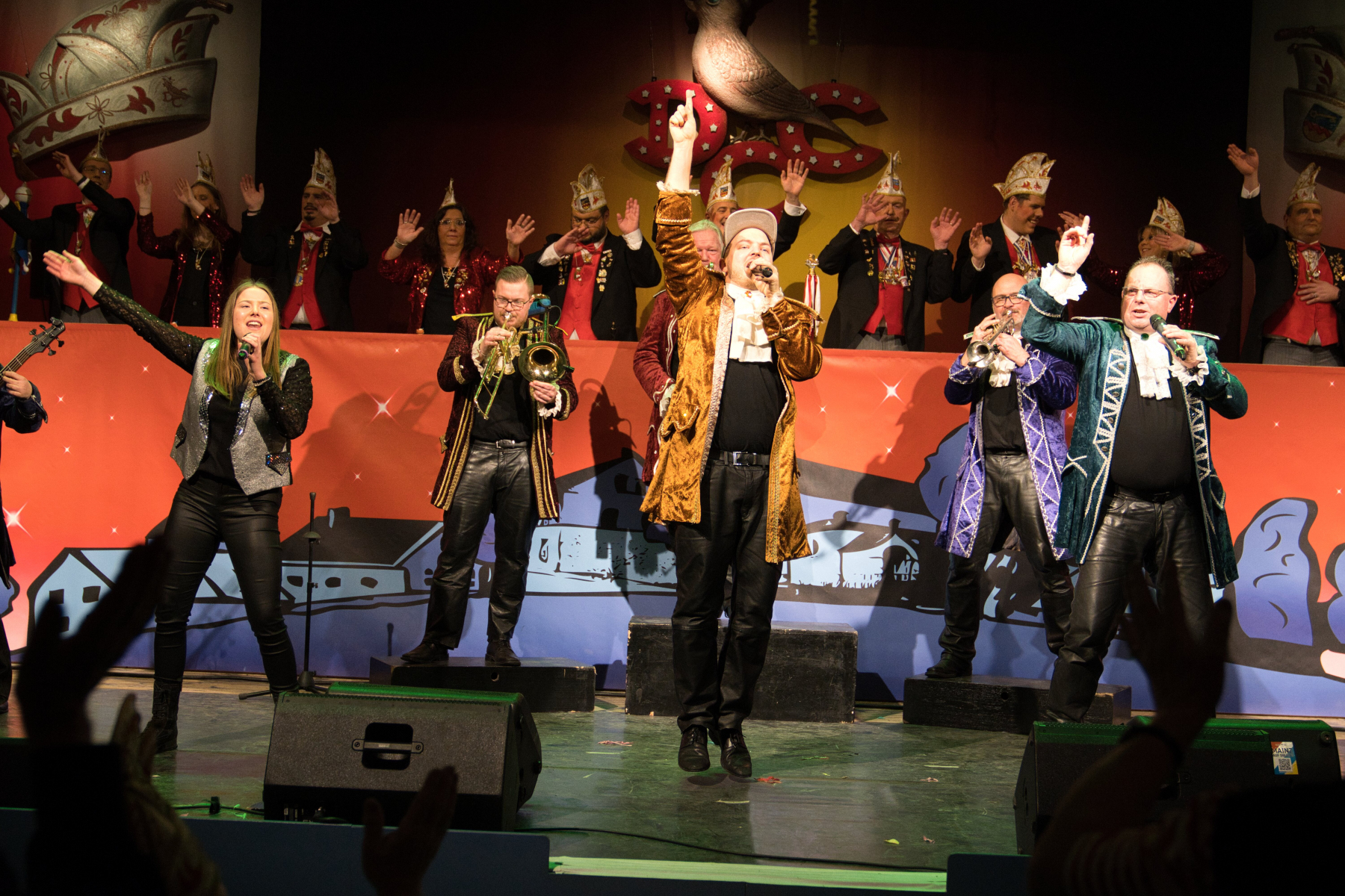 Musikalisch heizte Oliver Mager dem Publikum genauso ein wie die Spaßmacher Company und Handkäs un soi Mussig. Die Sitzungskapelle O-Ton aus Weisenau lieferte punktgenau den Tusch und unterstützte mit einem toll abgestimmten Klang.