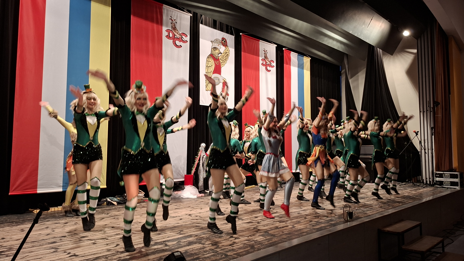Die Veranstaltung wurde von unserem Sitzungspräsidenten Jürgen Katluhn und dem 1. Vorsitzenden Joachim Kleintitschen moderiert und bot den circa 200 Besuchern ein buntes Programm aus Show, Musik und Tanz. Die Musicshow – & Marchingband Rheingold Show & Brass (Stabführung: Jeannette Rosenbaum) eröffnete mit einem umfangreichen Programm, die Showtanzgruppe Destination legte einen flotten Showtanz angelehnt an das Musical „Wizard of Oz“ auf die Rostra, und der Mainzer Mainzer Mischungschor bot ein Potpourri fastnachtlicher Klänge.