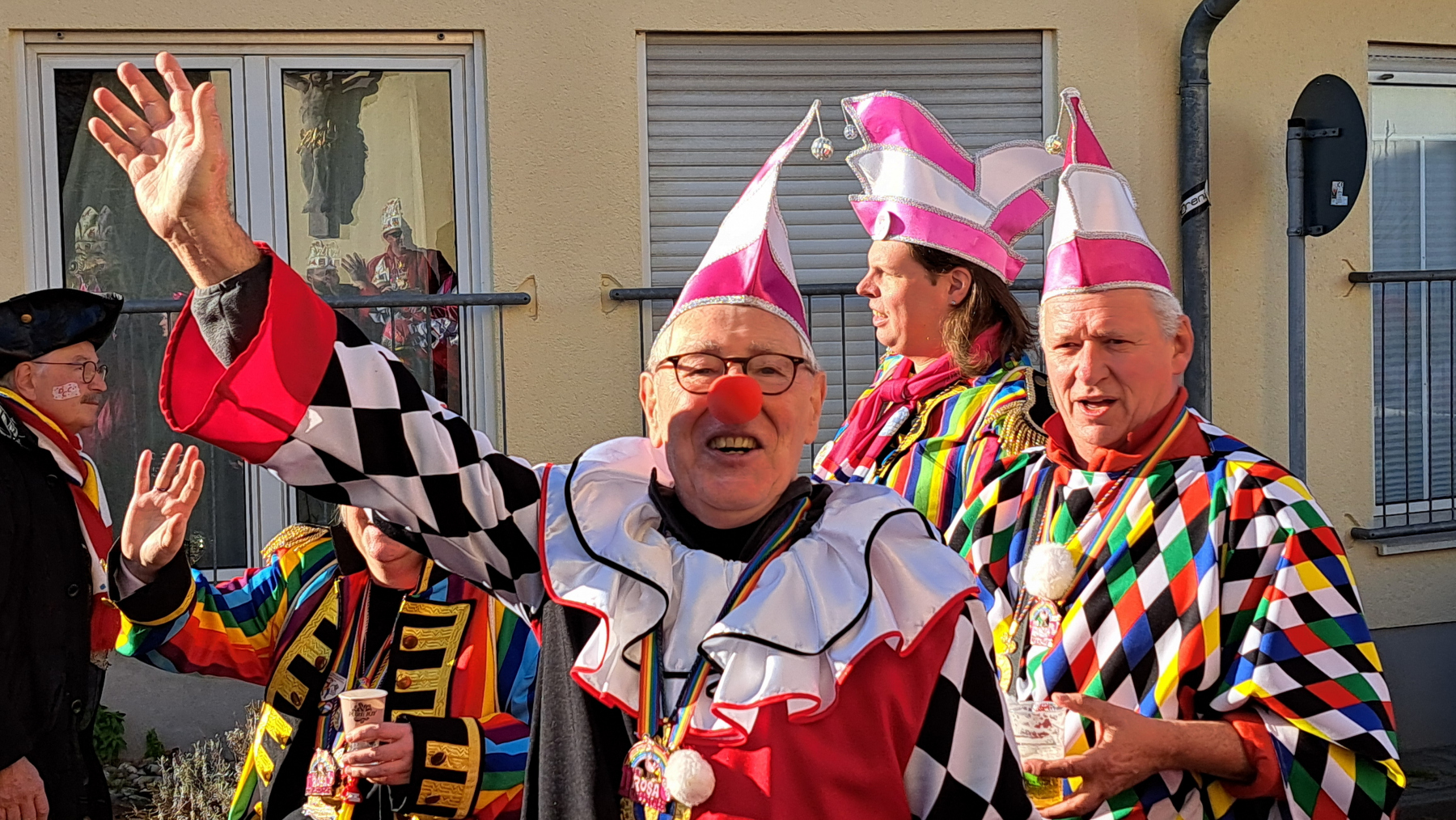 Vorstand und Komitee des DCC sowie Cordula, die Symbolfigur des DCC (dieses Mal getragen von Christian Schuttpelz) nahmen den Zug zum Abschluss am „Draiser Kapellchen“ ab und grüßten die Zugteilnehmer mit fastnachtlichem Dank.