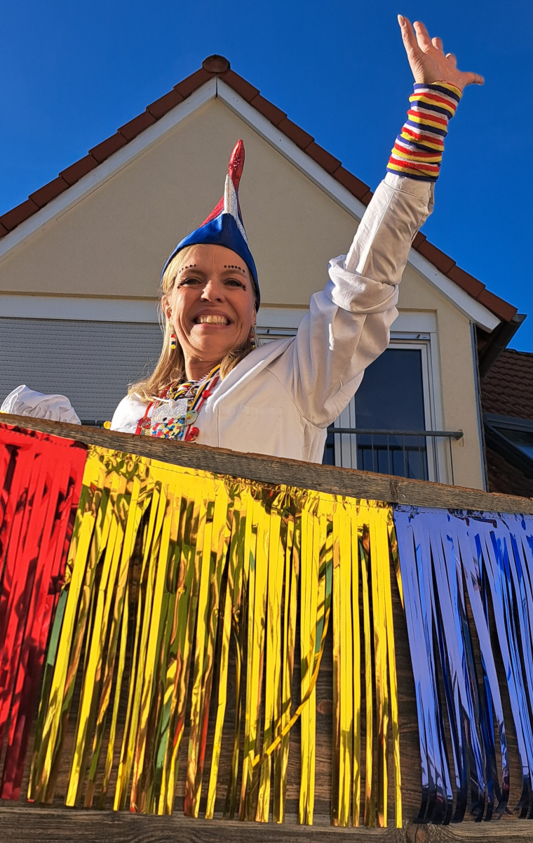 Vorstand und Komitee des DCC sowie Cordula, die Symbolfigur des DCC (dieses Mal getragen von Christian Schuttpelz) nahmen den Zug zum Abschluss am „Draiser Kapellchen“ ab und grüßten die Zugteilnehmer mit fastnachtlichem Dank.